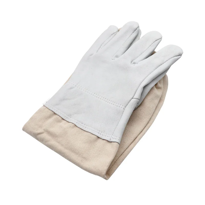 Mano suave, Pulgar rectoBonita protección de brazo largoMaterial: piel de oveja + lienzoColor: Blanco