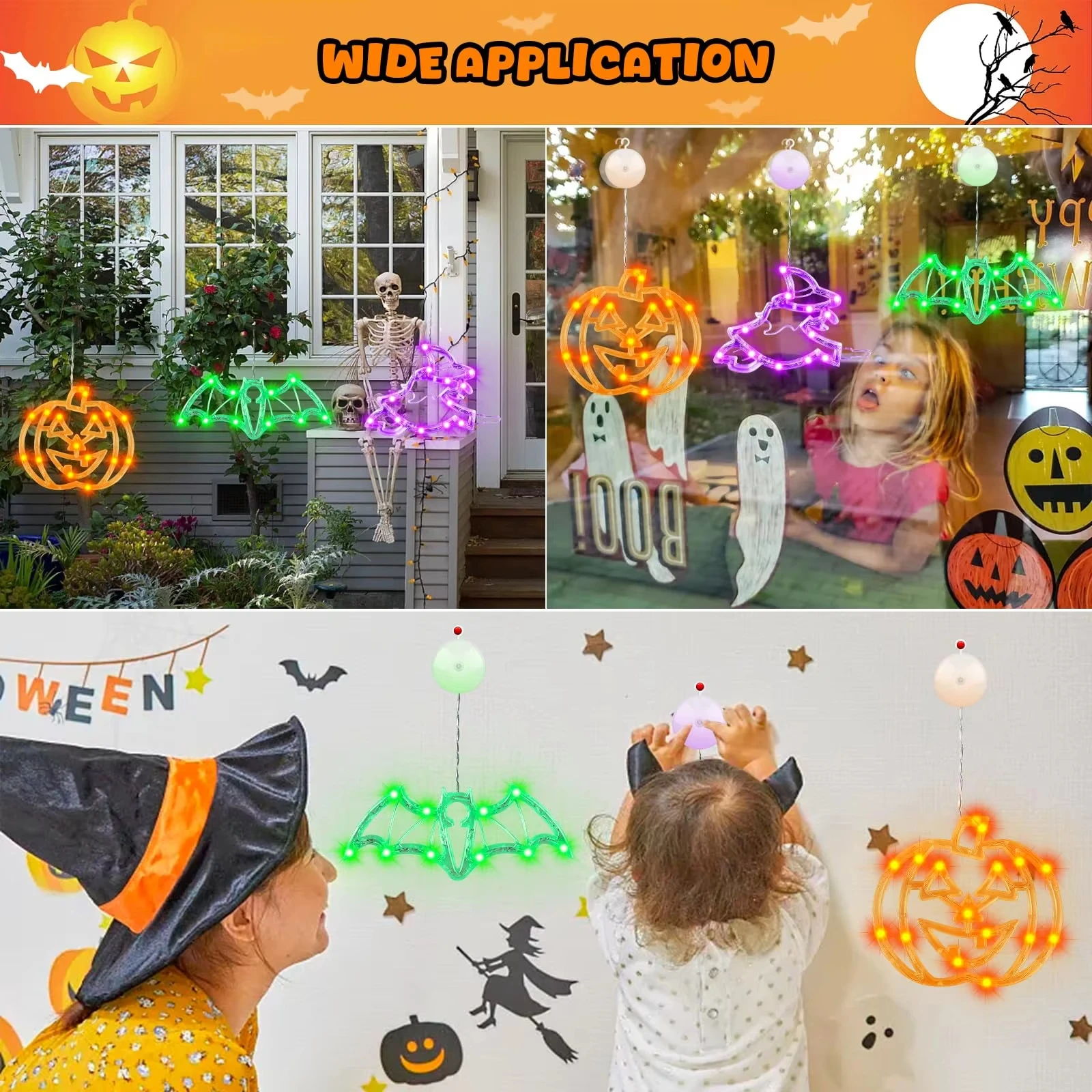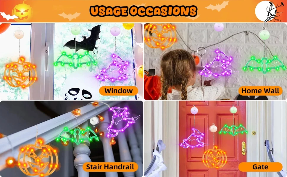 Escenario de uso: fiestas navideñas, Navidad, decoraciones de Halloween, vidrios de ventanas, luces decorativas de puertas.