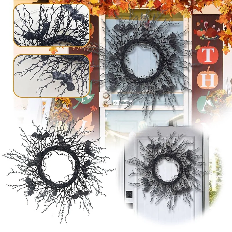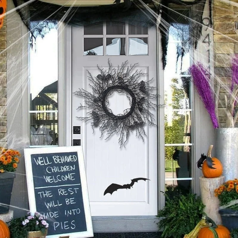 Guirnalda de murciélago de Halloween para puerta delantera, 21,65 ", decoración de fiesta en casa