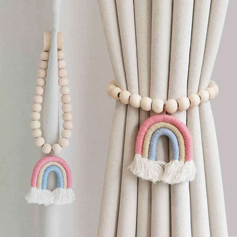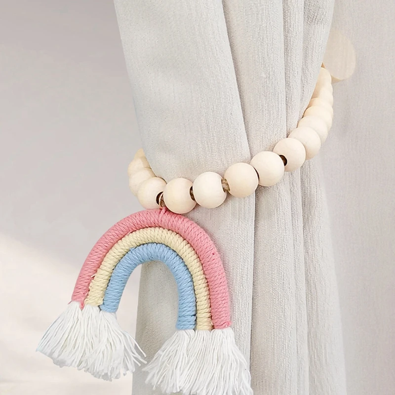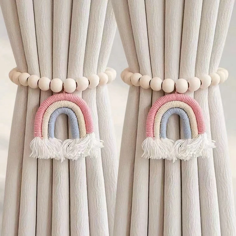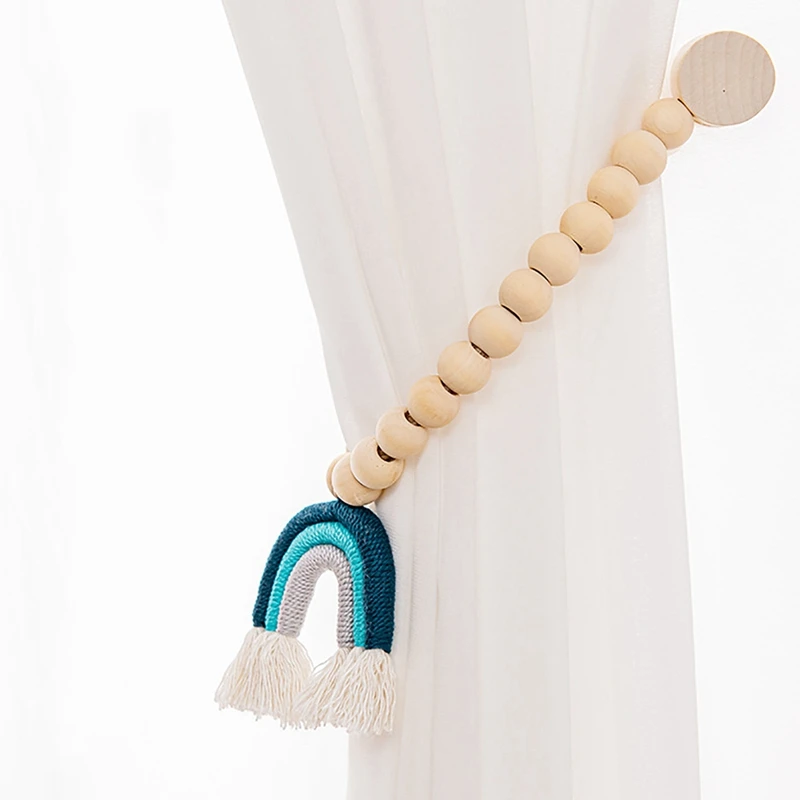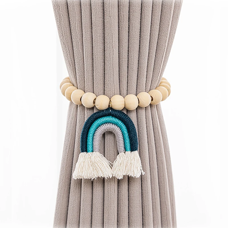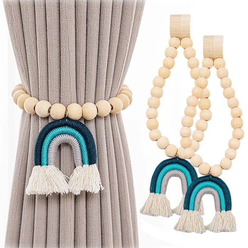 【Diseño de colgante de arco iris】 Las corbatas de cortina para cortinas están diseñadas con cuentas de madera y un lindo colgante de arco iris unido en las apariencias, que son simples y pueden darle una sensación de granja, y agradables para la mayoría de la decoración del hogar para crear un ambiente de vida relajante.