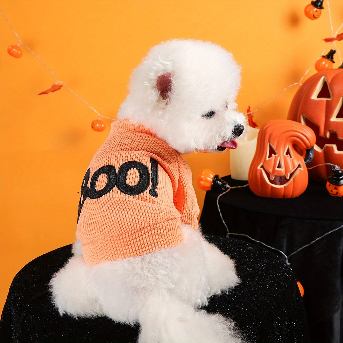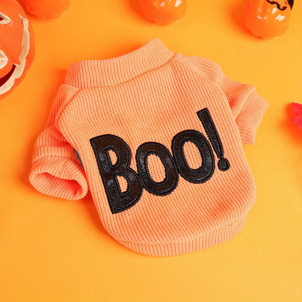 Halloween cuello redondo naranja ropa para mascotas perro gato divertido negro Boo inglés bordado jersey abeto
