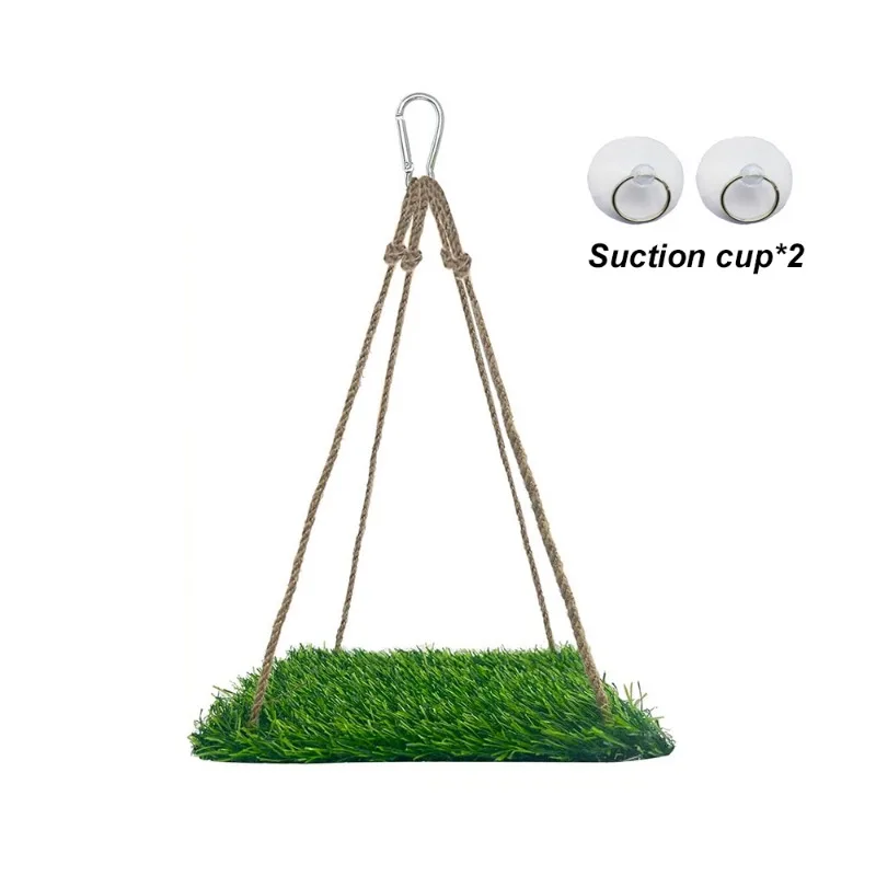 Hamaca de césped Artificial redonda/cuadrada, cama, columpio para pájaros, juguete colgante para morder para animales pequeños, ardilla, jaula para hámster, juguetes para escalar, 1 ud.