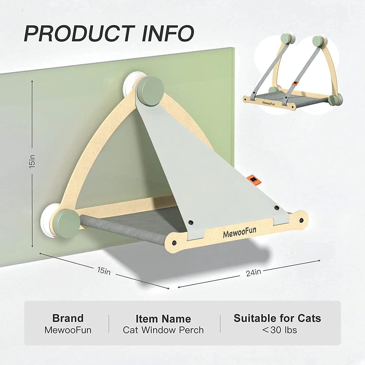 【 Diseño Original y último 】diseño moderno y función duradera. Dos tipos de instalación y tres colores para su selección. Hecho de alfombra de lona resistente, correas elásticas y material de madera ecológico. La temperatura corporal de tu gato no se sobrecalienta debido a la transpirabilidad de esta hamaca para ventana de gato.