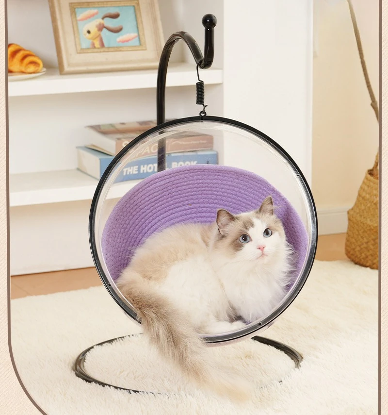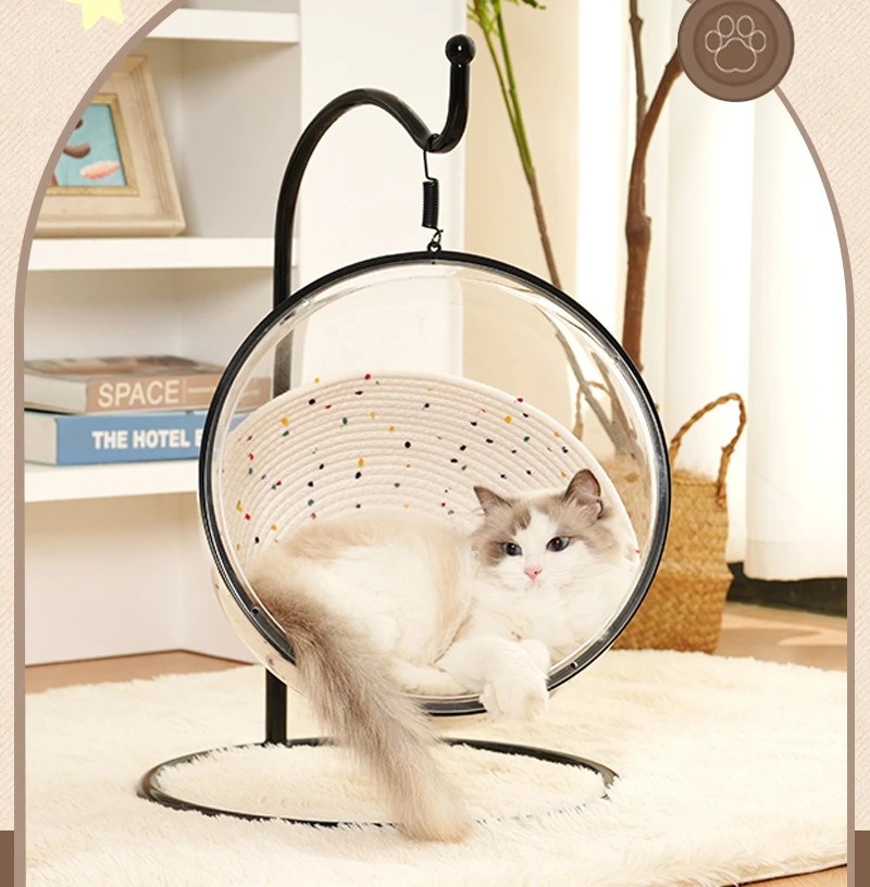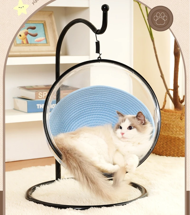 Hamaca colgante para gatos, nido, cabina espacial transparente, columpio, hamaca para gatos, camas, cuna colgante, suministros universales para mascotas para las cuatro estaciones