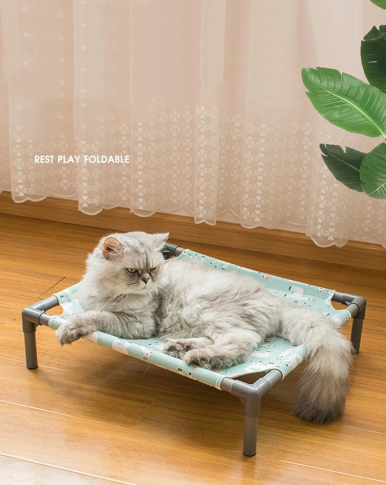 Esta es una cama plegable desmontable para gatos. Está hecho de material de alta calidad, duradero de usar. La hamaca ligera refrescante permite una fácil limpieza y transporte durante el viaje. Mantenga a sus gatos alejados de varios.