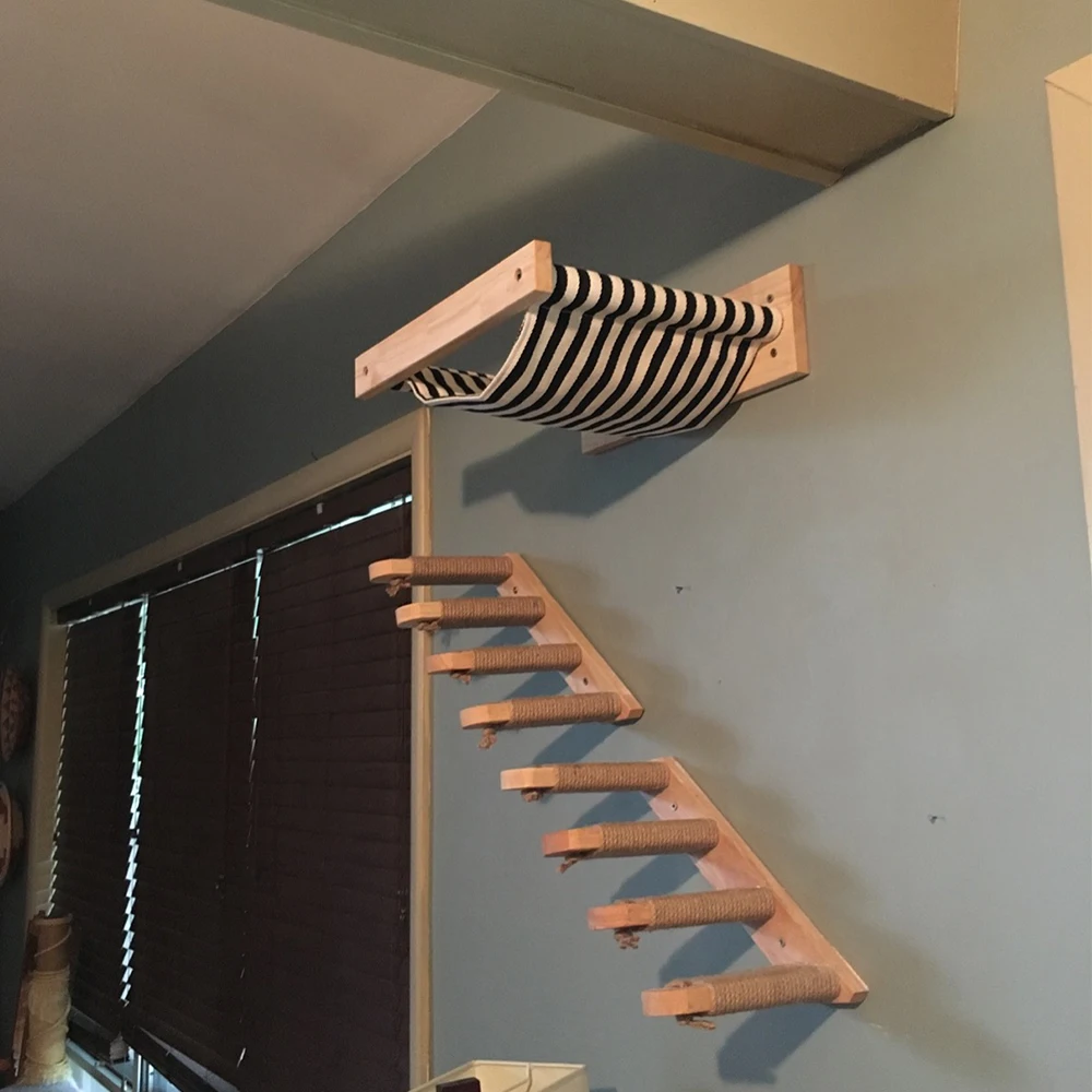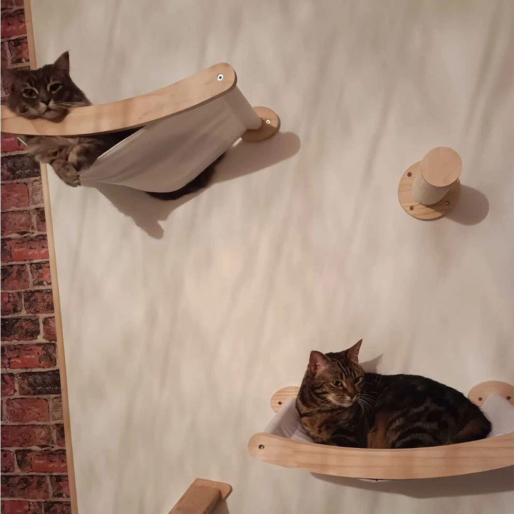 Los estantes de pared para gatos satisfacen el hábito de los gatos de escalar, aumentando el ejercicio y reduciendo la posibilidad de obesidad, lo que es bueno para la salud. Además, le da a los gatos espacio para trepar y evitar estropear el hogar.
