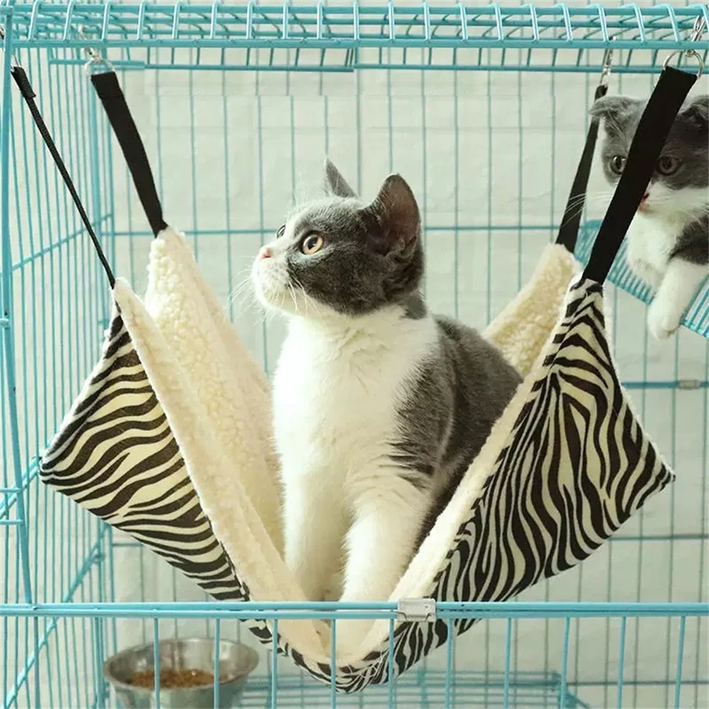 Hamaca de felpa cálida para mascotas, jaula para gatos, hámster, suministros para mascotas de invierno, hamaca ajustable para gatitos, cesta colgante para gatos