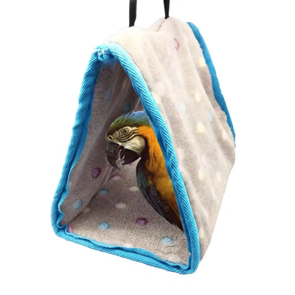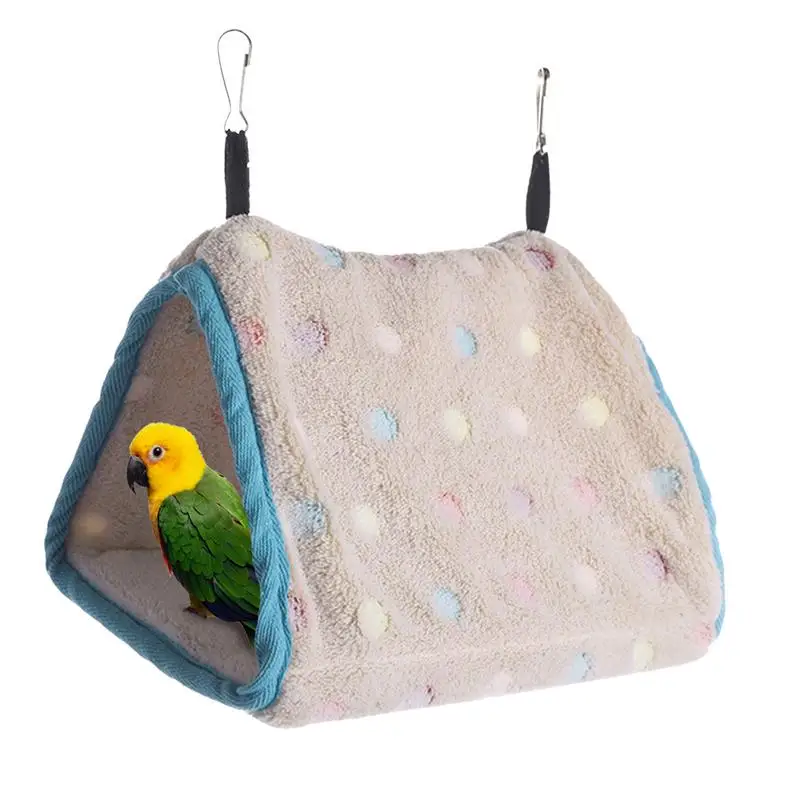 1. Materiales de alta calidad: las telas de felpa gruesa proporcionan un buen hábitat para su loro. Esta casa para pájaros proporciona una cabina cálida y cómoda para sus lindos loros o pájaros, donde puede descansar, esconderse, jugar y dormir. Una tienda de campaña suave y cómoda puede ayudar a las aves a relajarse y proporcionarles una sensación de seguridad.