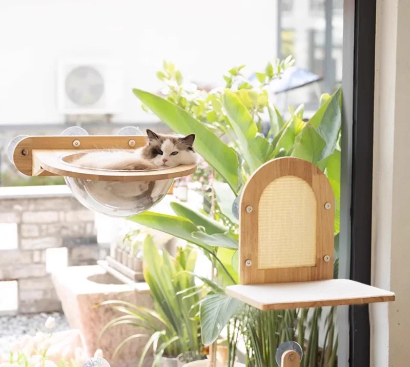 Hamaca para gatos con combinación libre, ventosa de madera maciza, cama para gatos, ventana colgante, hamaca para gatos, poste rascador de Sisal, suministros para mascotas