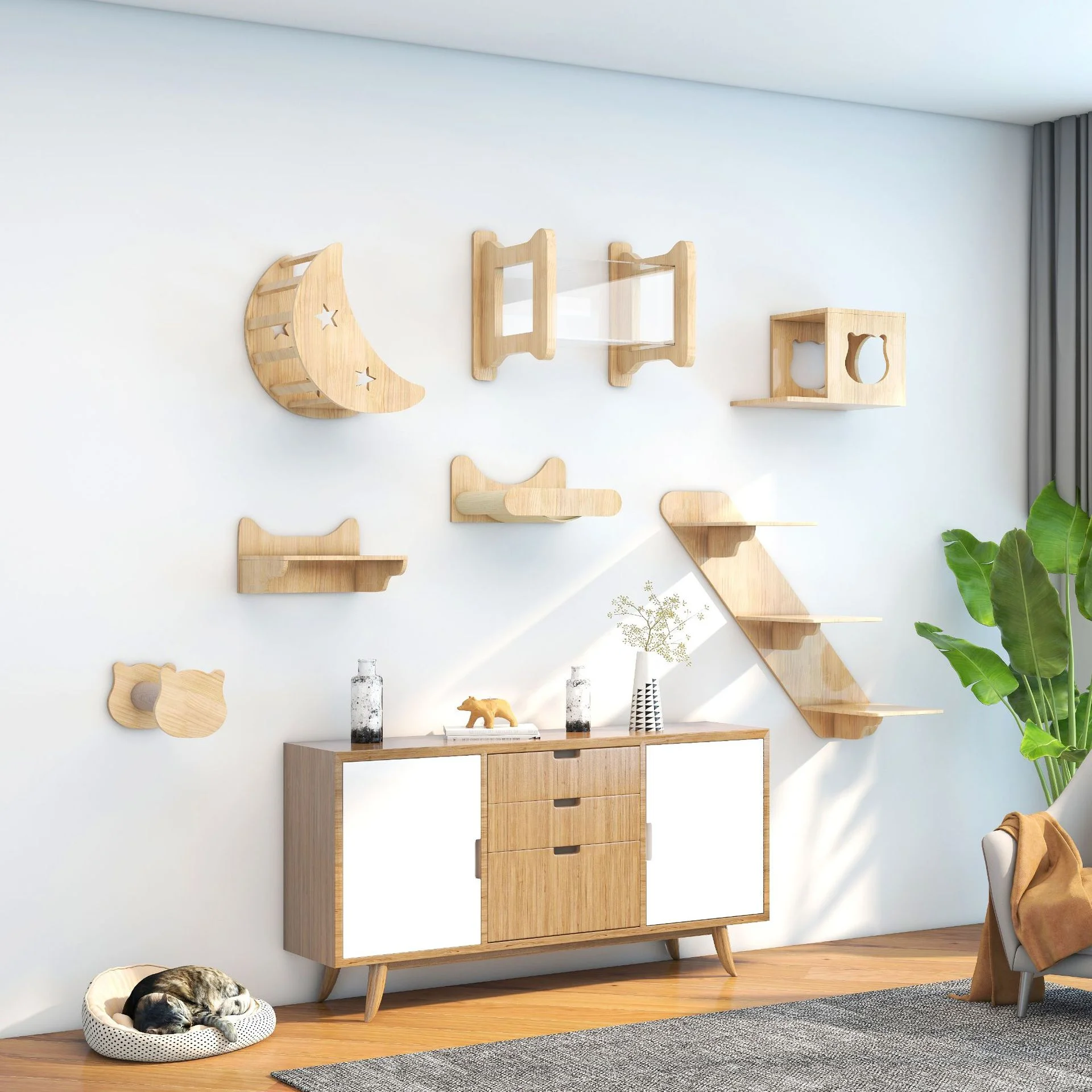 Los estantes de pared para gatos se adaptan al hábito de los gatos de escalar, aumentan el ejercicio y reduciendo la posibilidad de obesidad, lo que es bueno para la salud.Además, le da a los gatos espacio para escalar y evitar estropear la casa.