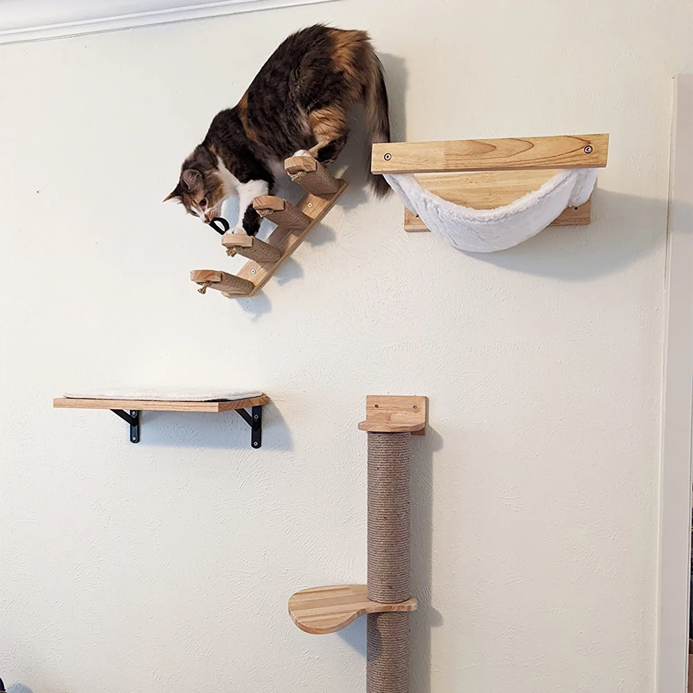 Cree un impresionante parque infantil para gatos con nuestro versátil juego de muebles de pared. Cada accesorio se puede adquirir de forma independiente, lo que le permite diseñar una exhibición única y artística.