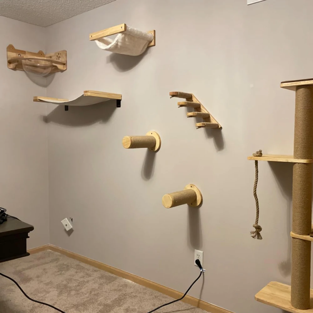 Los estantes de pared para gatos se adaptan al hábito de los gatos de escalar, aumentan el ejercicio y reduciendo la posibilidad de obesidad, lo que es bueno para la salud.Además, le da a los gatos espacio para escalar y evitar estropear la casa.