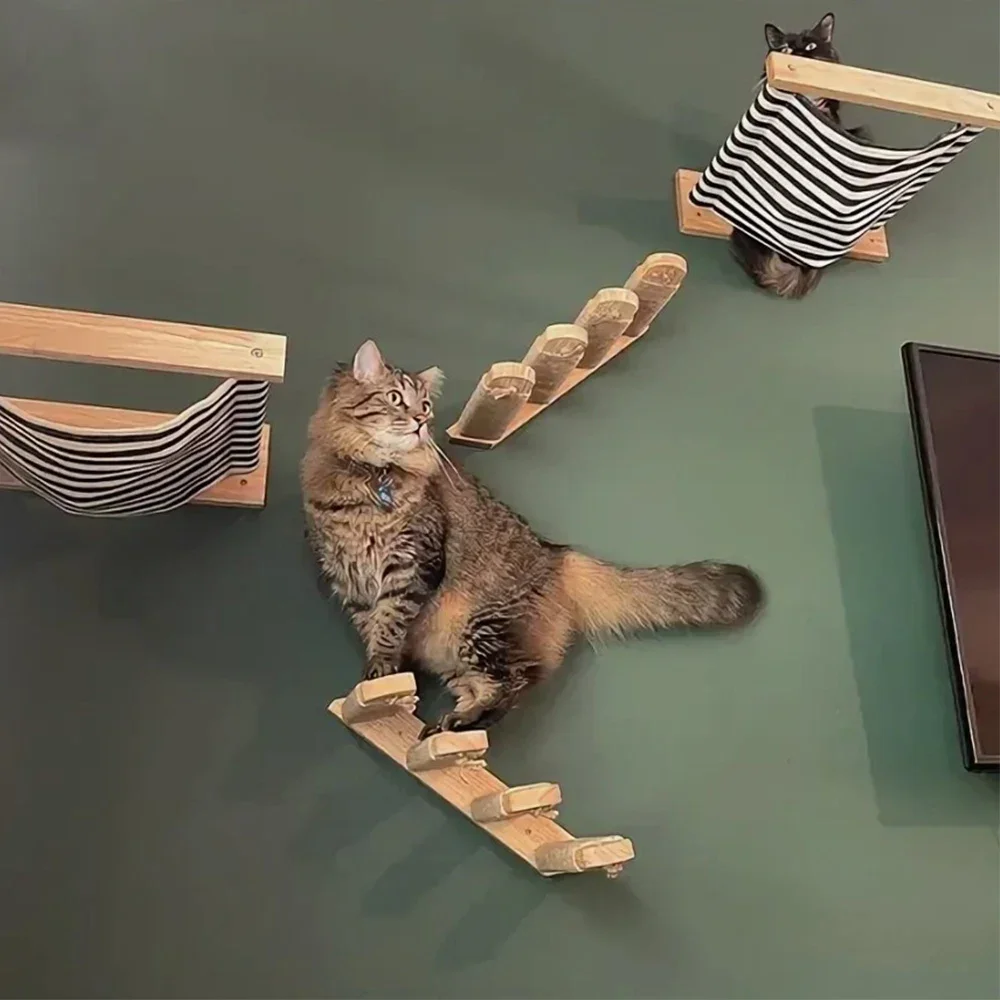 Juego de muebles de pared para gatos, poste para rascar y escalar, hamaca, cama, estantes de madera para escaleras, casa interior para gatitos, 1 ud.