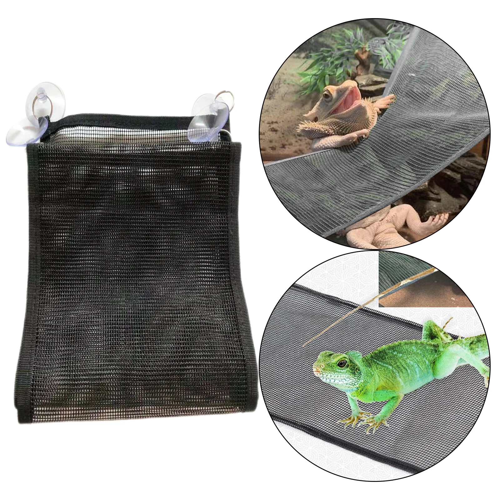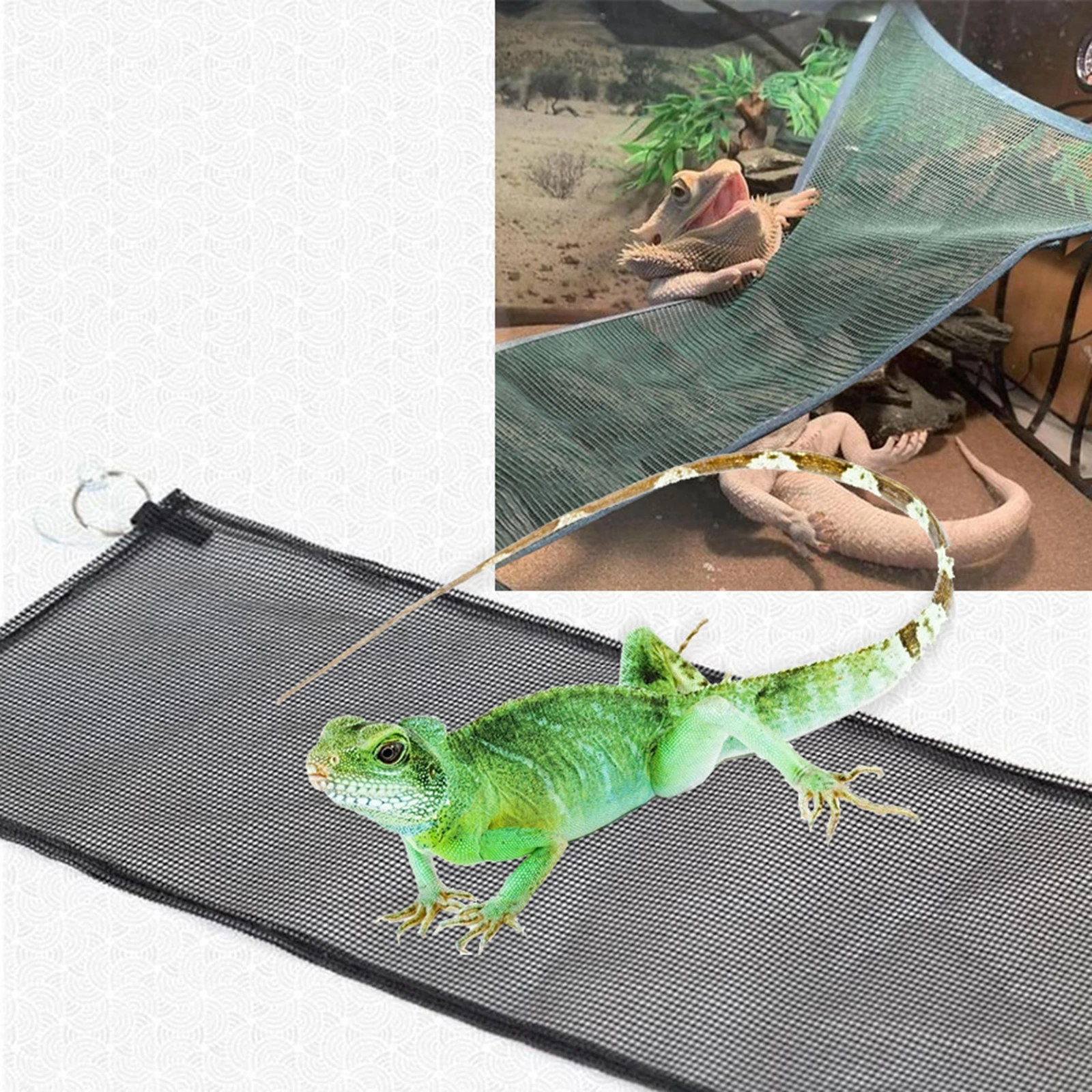Hecho de malla transpirable y nailon duradero. La fuerte ventosa de la hamaca para reptiles mantendrá su tumbona en su lugar sin importar si está en vidrio, acuarios acrílicos, terrarios, viveros o su ventana al sol.