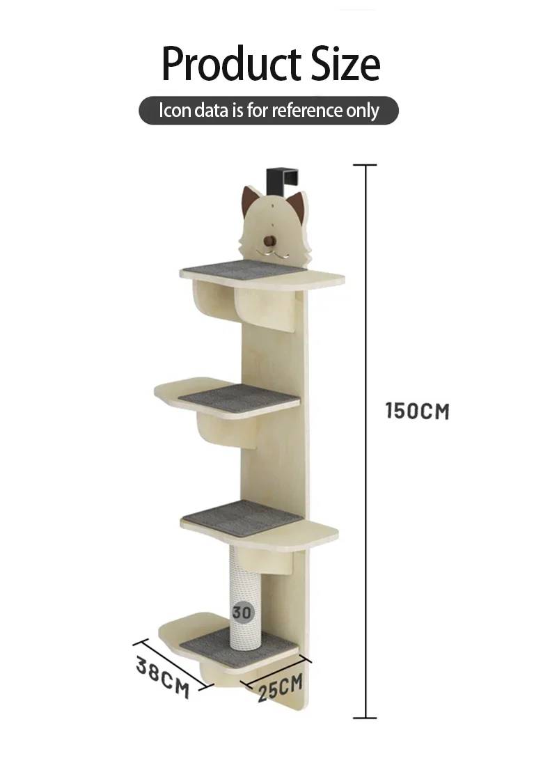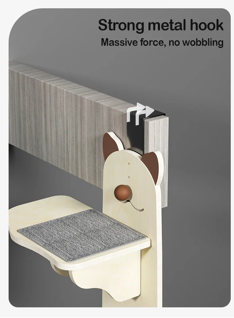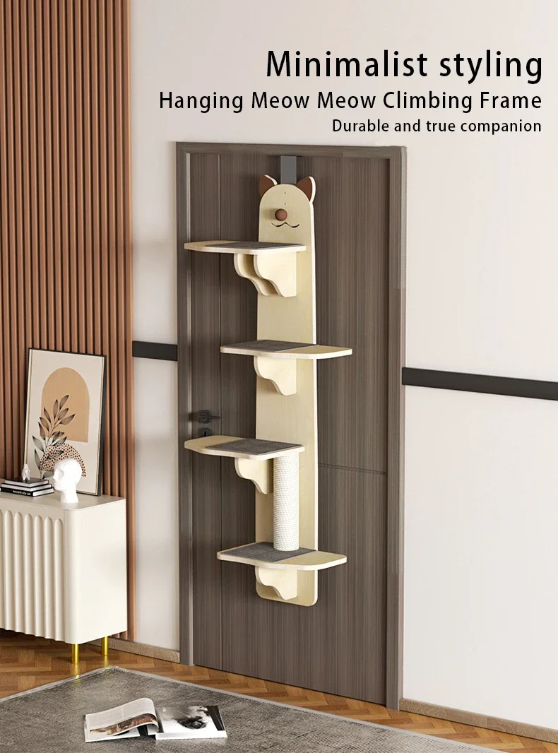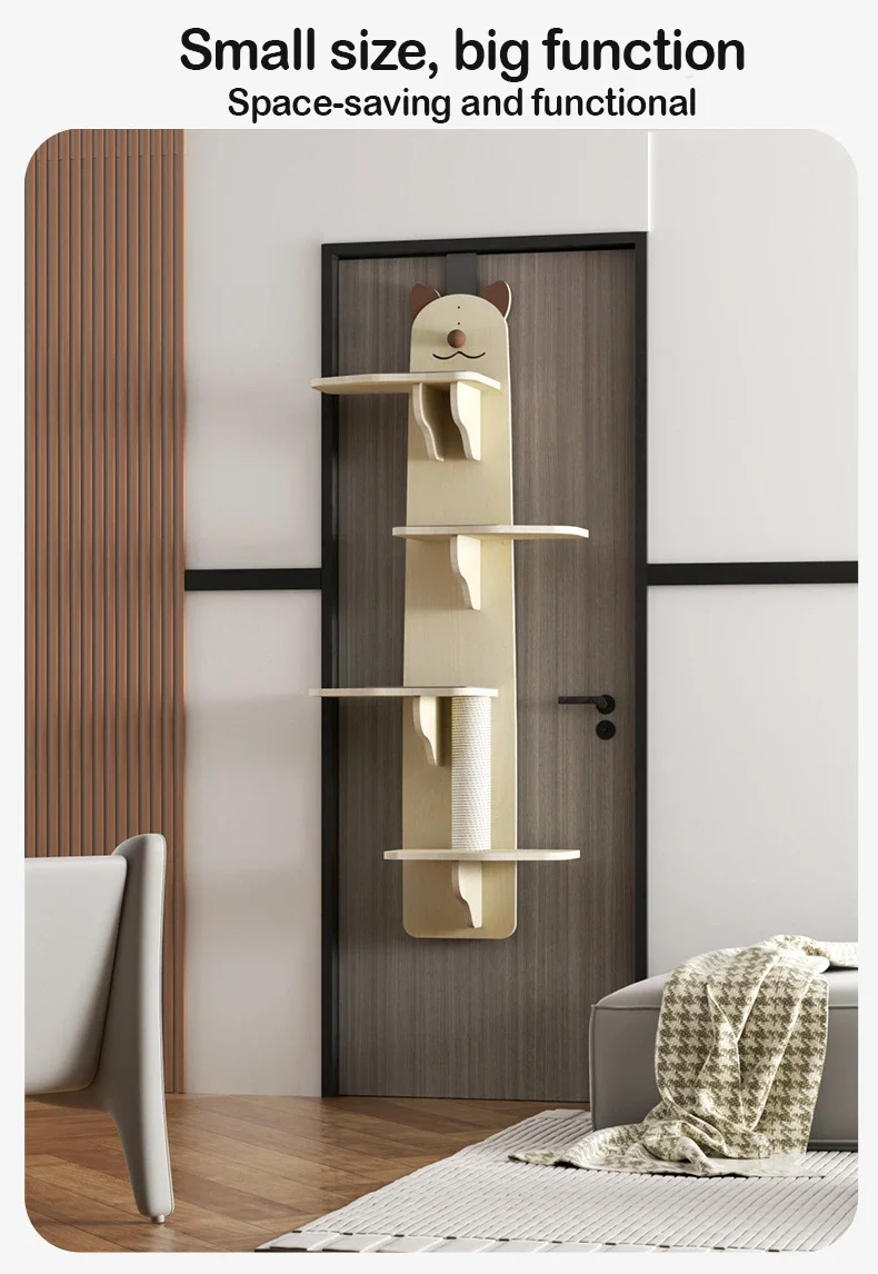 Hamaca con marco de escalada para gatos, nido, una en el árbol, sin espacio en el suelo, plataforma de salto para gatos de madera maciza pequeña, 4 niveles