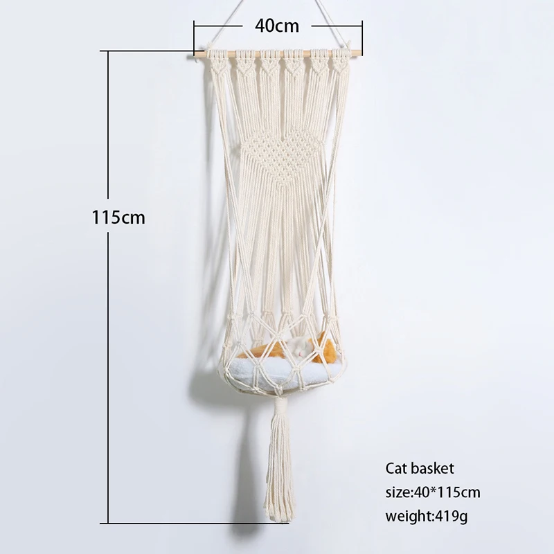 2.Our macrame cat swing with catnip bed are a seamless addition to any room’s Fashion sense! Thanks to its round shape bed, It is ideal for pets who love to curl up! This macrame lounger is leaving your cat in an island mindset.