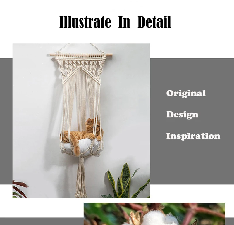 1.One such stylish piece of gift, Hand-woven just for your cat to hang out in the house also can be a beautiful macrame Bohemian wall art.