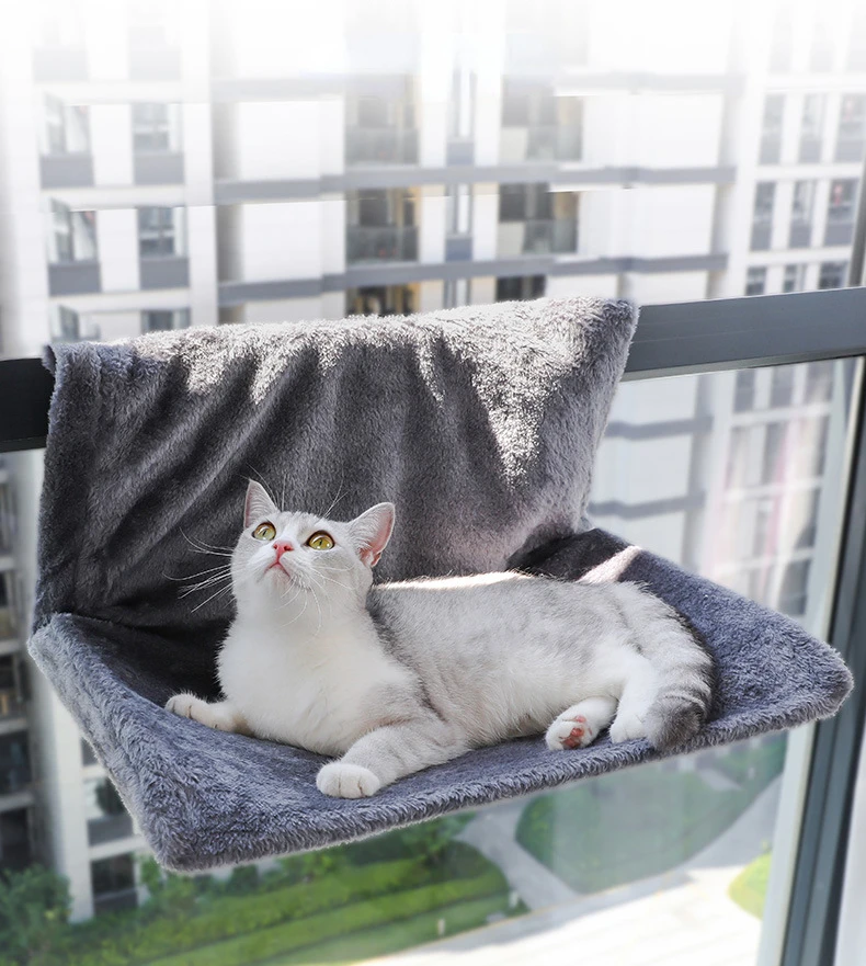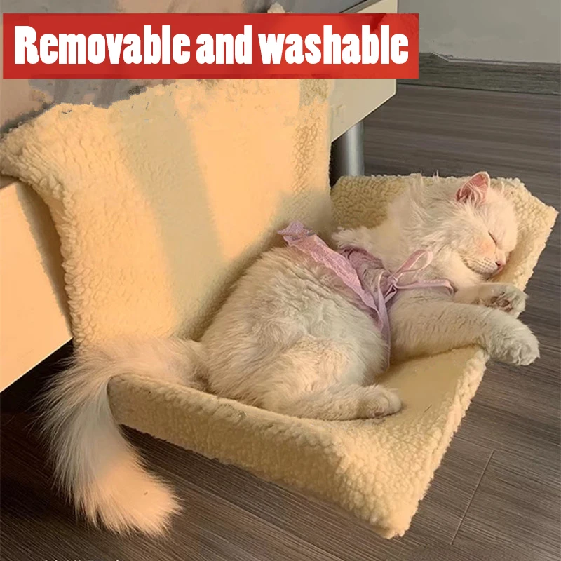 Hamaca de Metal con marco de hierro para gatos, alfombrilla de vellón cálido, suave, colgante, alféizar de cama, ventana, Banister, gabinete, radiador, colgador, accesorios para gatos