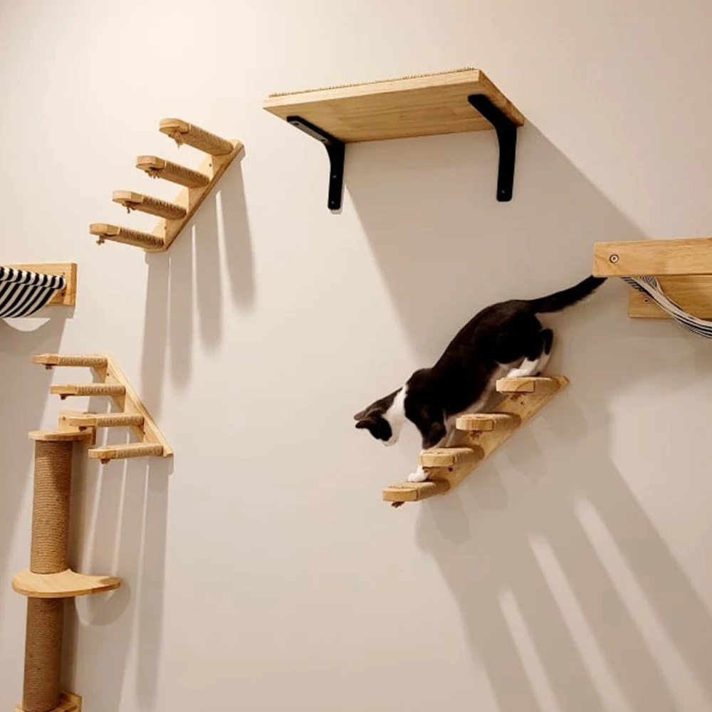 Estos son muebles de pared para gatos para los amantes de los gatos que desean el área de descanso y juego perfecta para sus bebés peludos.Nuestros estantes y percheros de pared para gatos brindan a su gato un lugar seguro y cómodo para descansar y jugar mientras le ahorra valioso espacio en el piso.