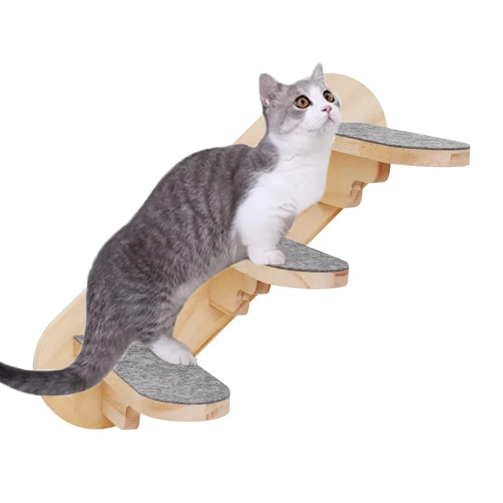 Todos los productos están hechos de madera maciza de alta calidad, con textura clara y textura dura.Después del pulido y procesamiento fino, no hay bordes ni esquinas afiladas para evitar que los gatos se lastimen.La estructura estable y los escalones profesionales de montaje en pared garantizan que los muebles para gatos puedan soportar la carrera, el salto, la escalada y el uso prolongado de los gatos sin sacudidas ni deformaciones fácilmente, lo que proporciona un espacio de actividad seguro y confiable para los gatos.