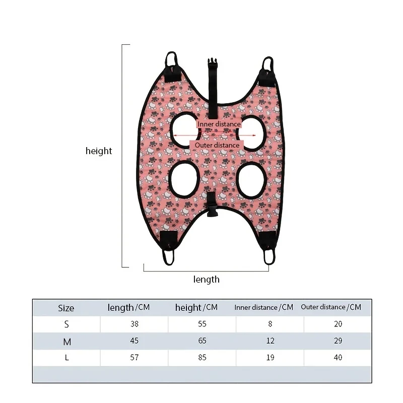 Esta hamaca para cortar uñas para perros está diseñada con una estructura de malla 3D transpirable y flexible para mantener a su mascota cómoda. El dobladillo más grueso alrededor de los agujeros reduce la fricción en las piernas de su mascota, haciéndola tranquila y relajada al arreglarlo. Además, este producto es fácil de limpiar, lavar a mano y a máquina.