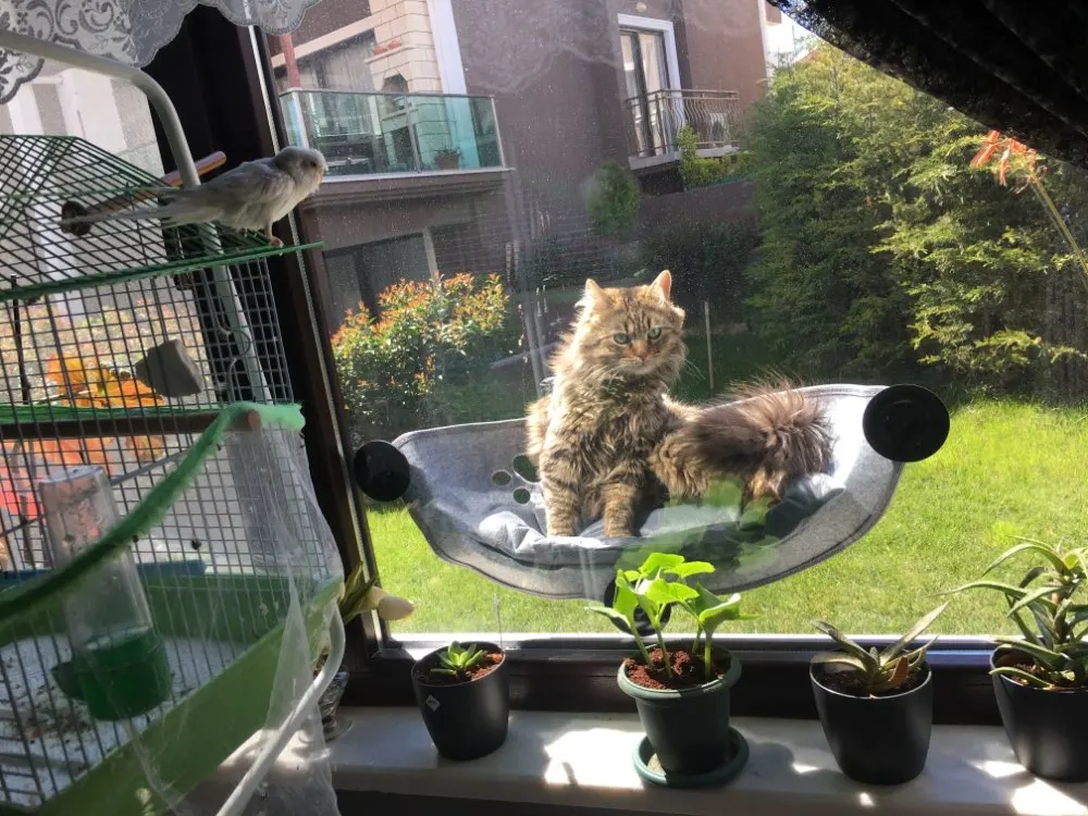 ฅ Seguro y confiable: proporciona un baño de sol seguro de 360 ° para gatos, 3 ventosas de alta calidad permiten que pueda soportar más de 35lb de peso para gatos, se aplican a gatos grandes.