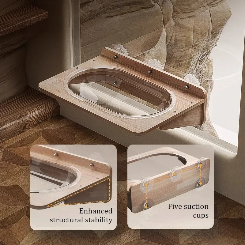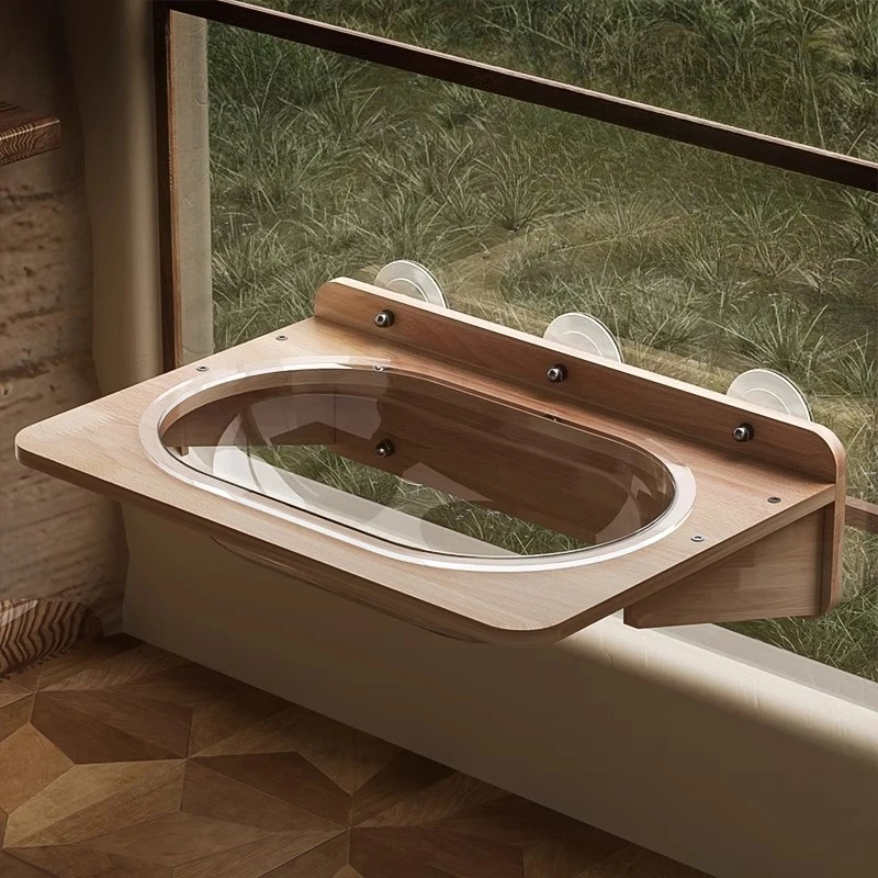 Hamaca con ventana para gatos, cama para gatos con ventosa, colgante de madera, hamacas acrílicas transparentes para gatos, camas de cesta para mascotas montadas en la pared para escalar