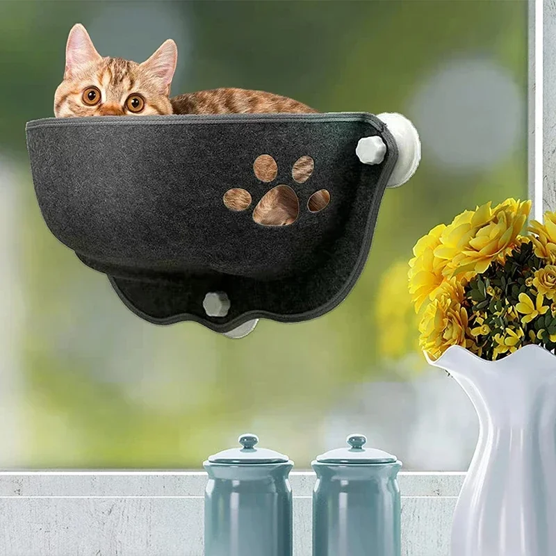 Hamaca absorbible de fieltro para gatos con ventosa, ventana francesa, nido para gatos, suministros para mascotas, nido para mascotas, hamaca transpirable para ventana de gatos