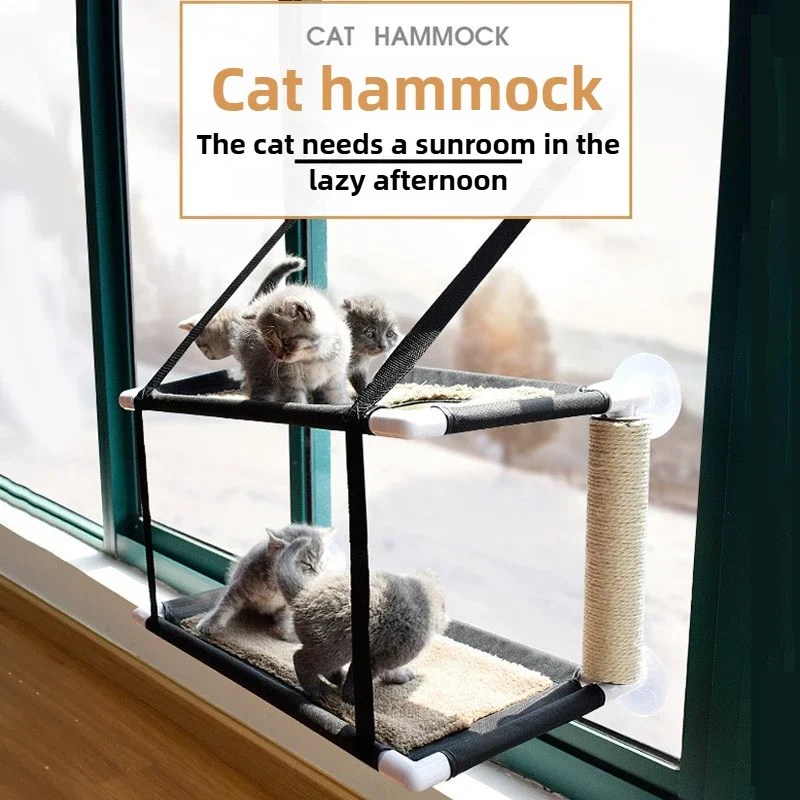 Hammack de doble capa para gatito, ventana colgante para tomar el sol, estera de terciopelo para gato, ventosa, poste rascador de Sisal duradero