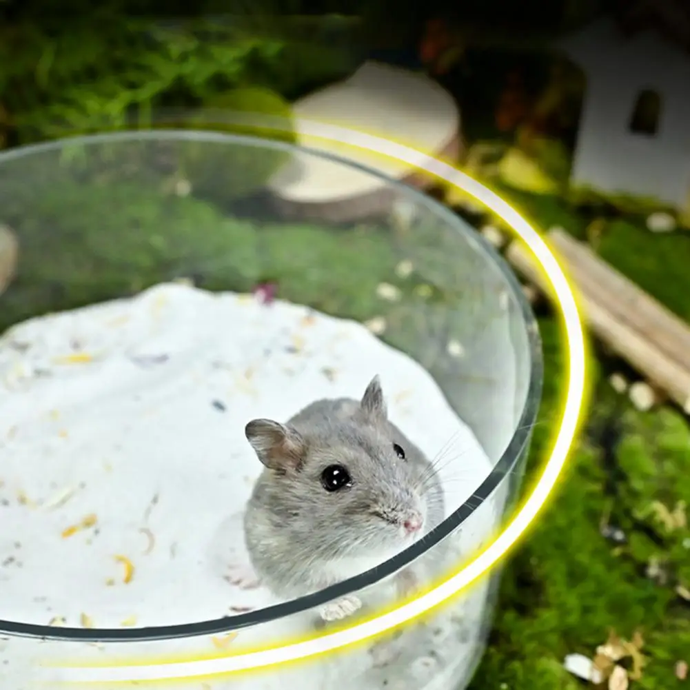 La caja de baño de arena transparente le permite ver fácilmente a su hámster, disfrutar y no perderse el momento feliz y los momentos lindos de su querida mascota. Está hecho de material respetuoso con el medio ambiente, que puede proteger la salud del hámster y dejar que el hámster disfrute del paraíso exclusivo que ha creado para él.