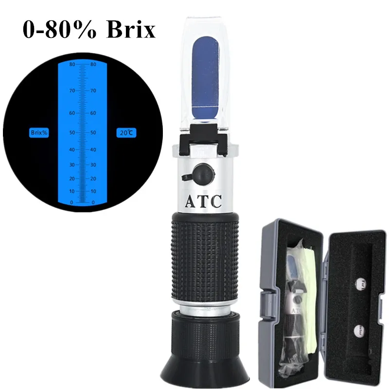 Refractómetro Brix portátil 0-80% Brix Meter ATC Concentración High Sugar Test Tool Medidor de dulzura de frutas