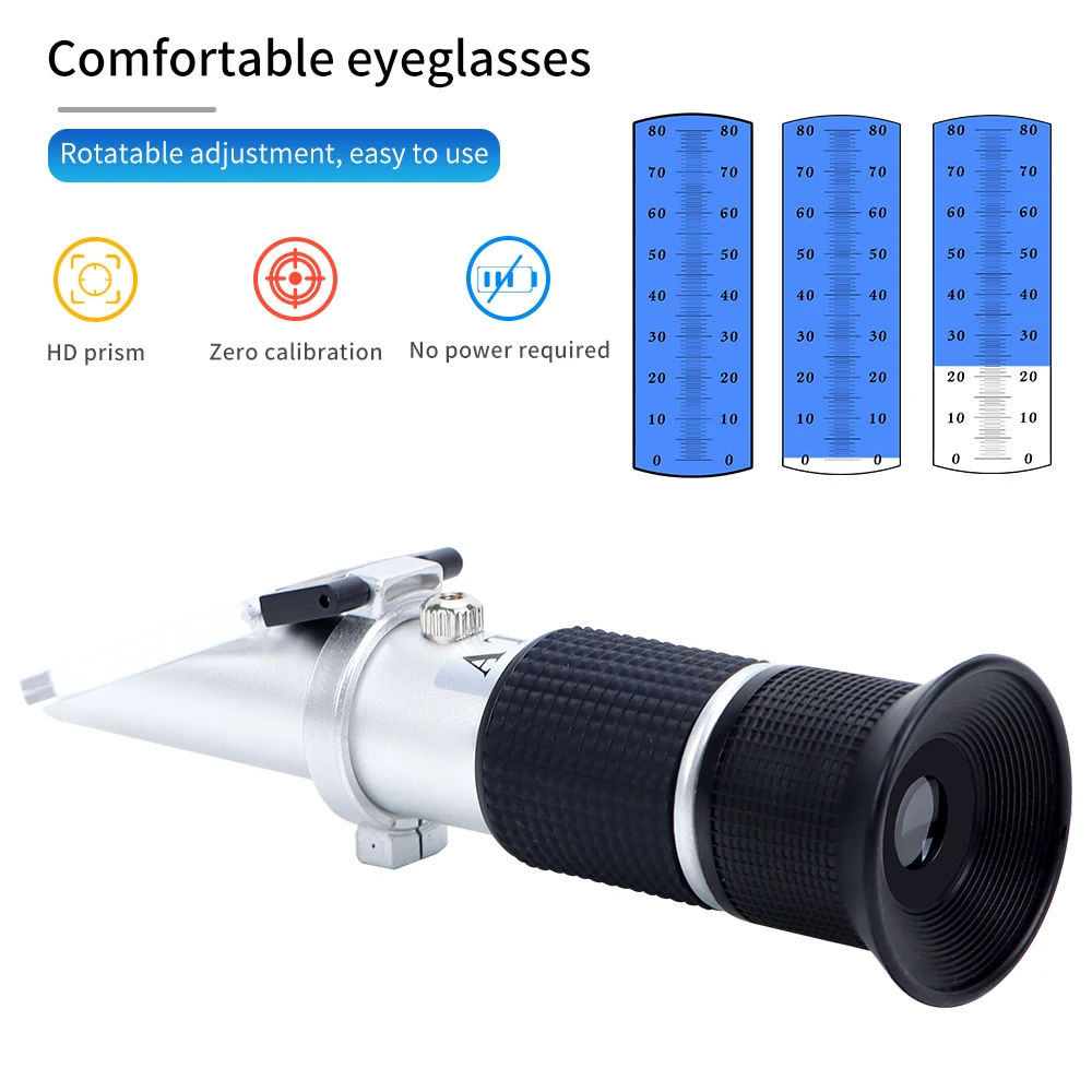 Refractómetro Brix portátil 0-80% Brix Meter ATC Concentración High Sugar Test Tool Medidor de dulzura de frutas