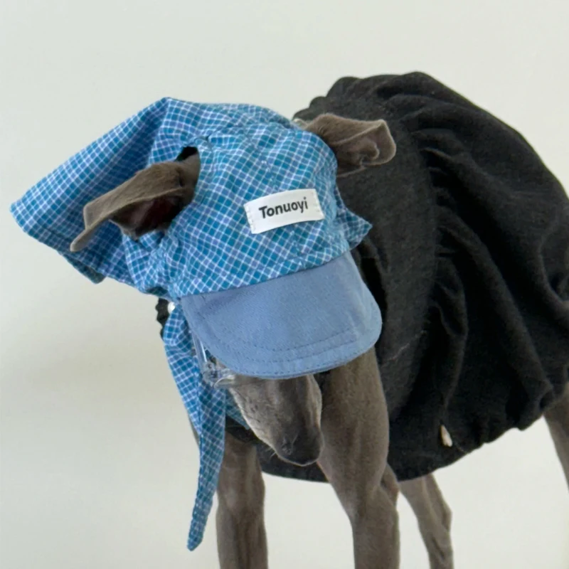 여름 작은 그레이하운드 선 스크린 모자 격자 무늬 스트랩 Headscarf Whipbit 용 조절 가능한 모자 작은 미디어 개를위한 통기성 멋진 모자