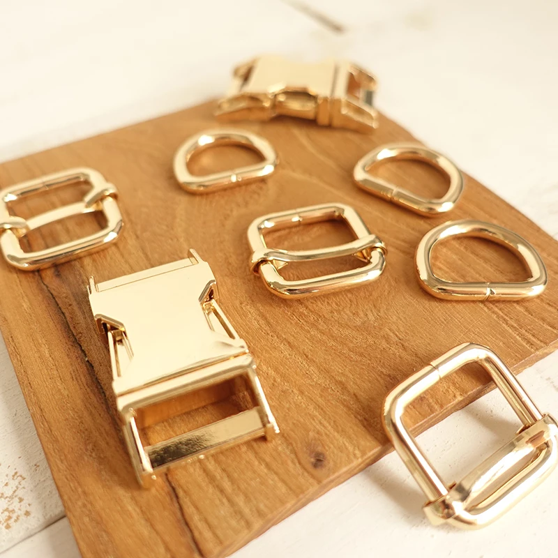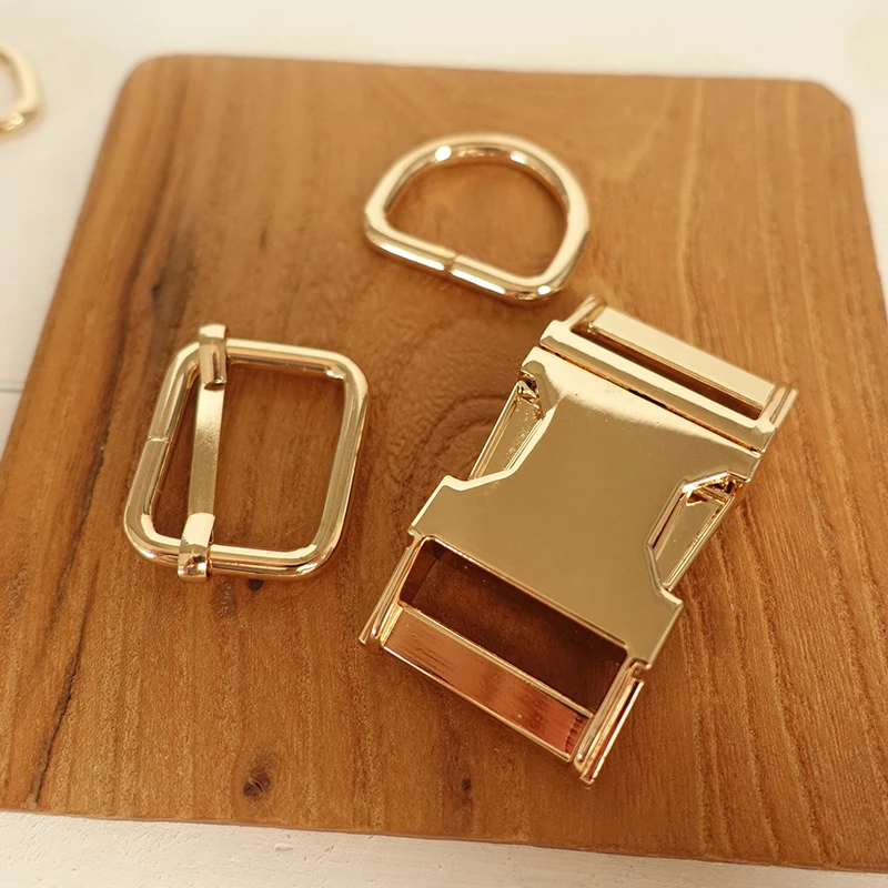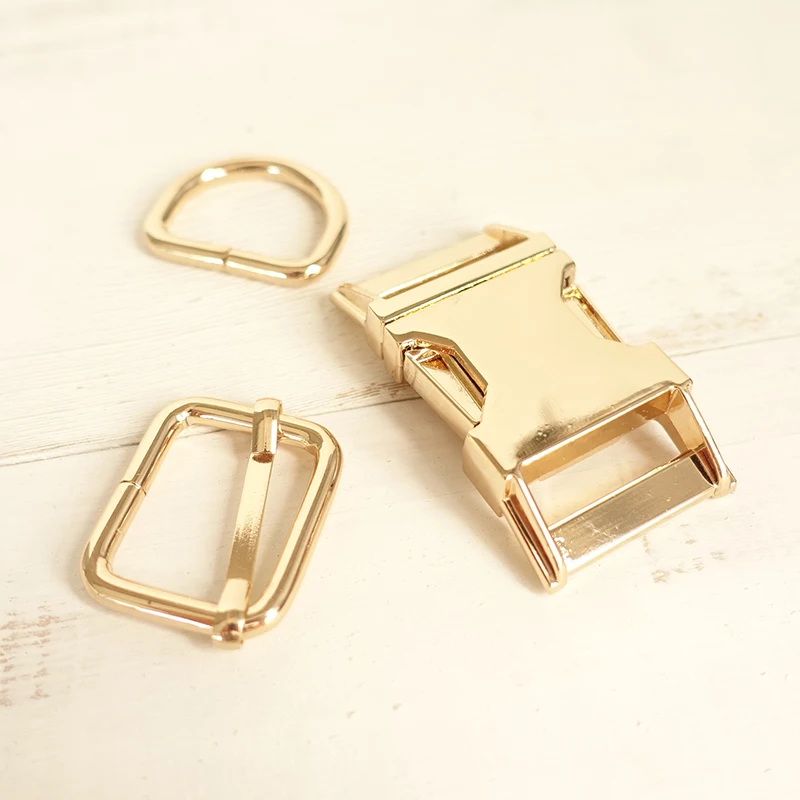 (Hebilla de metal + hebilla de ajuste + anillo D/juego) Collar de perro DIY dorado de 2,5 cm hebilla de aleación de zinc de embotación diy hebillas de ajuste