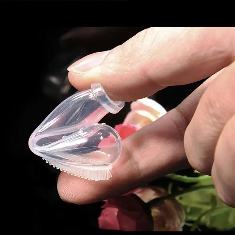 Atención y sugerencia: el cepillo para dedos puede desprenderse con facilidad con agua corriente. No aprietes para tirar con tanta fuerza. Pon un poco de jabón para platos en tu dedo antes de ponerte el cepillo.Quedará mucho más fácil.