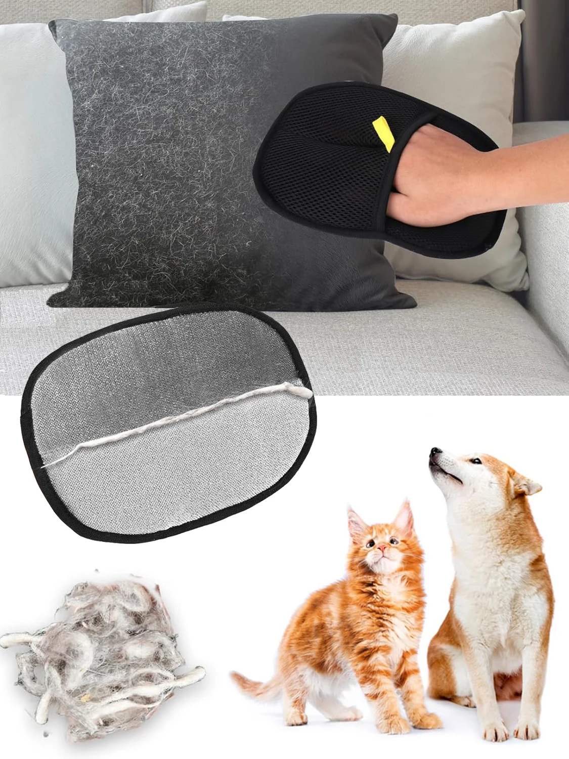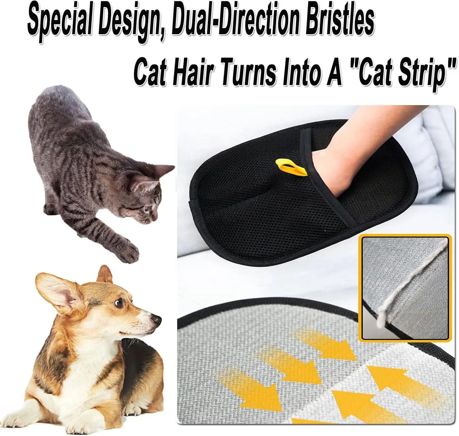 Herramienta de depilación de mascotas, guantes de eliminación estática reutilizables, guantes de aseo de doble cara para mascotas, elimina el pelo de piel de mascotas para alfombras