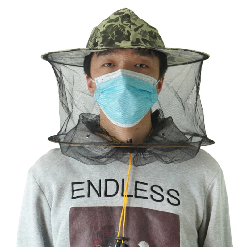 1 ud. Sombrero de camuflaje-velo apicultor protector Bee Hat Anti Bee dos capas cabeza Top Combo Bee Hat Bug malla máscara herramientas de Apicultura