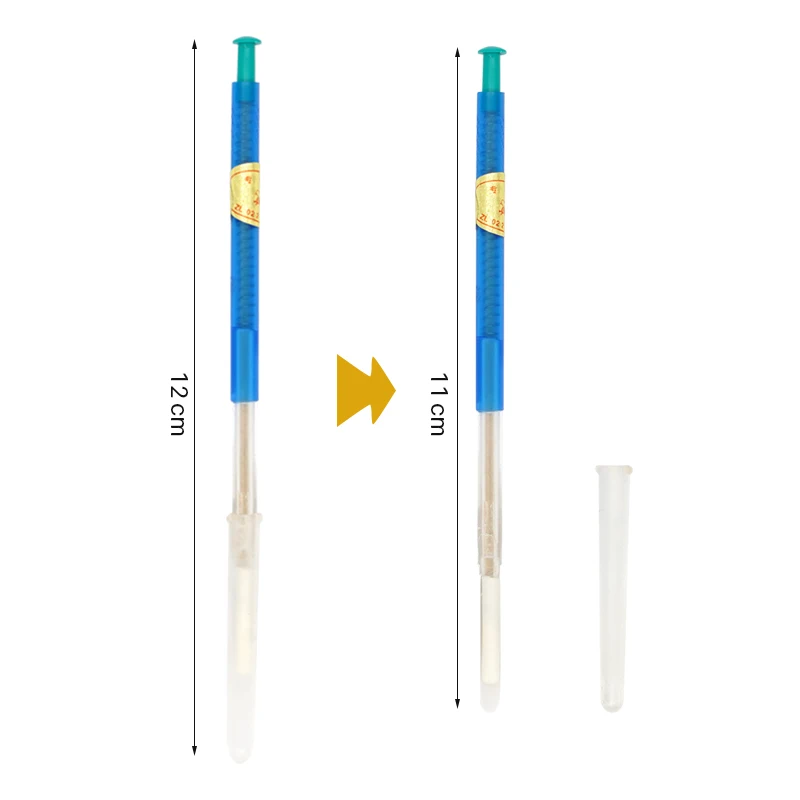 Estas herramientas de injerto tienen un émbolo de resorte que se utiliza para empujar suavemente la larva fuera de la caña y dentro de la taza.