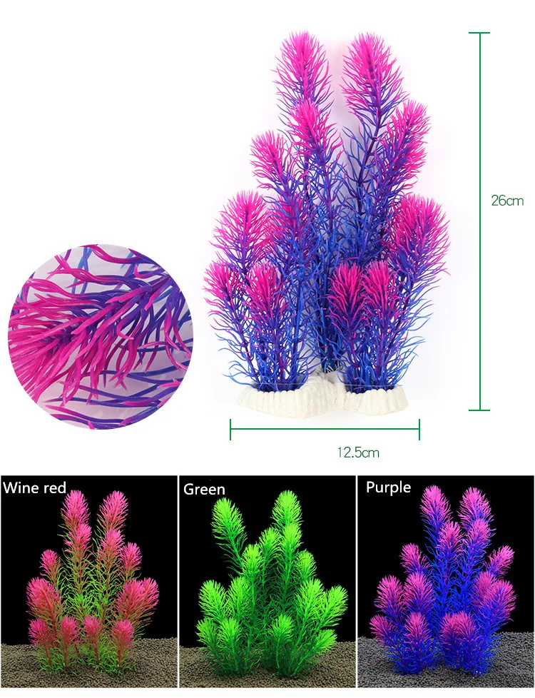 Proporciona una hermosa decoración para su acuario, también es un excelente escondite para los peces que añade diversión extra para jugar.Diseñado con una base pesada para que puedan colocarse firmemente en el tanque.Son absolutamente seguros para los peces, no serán dañados, putreteados ni causarán ningún problema de algas.Sin ningún requisito de iluminación ni dióxido de carbono.Material: de plásticoColor: verde, azul, rojo, blanco y azulAltura: 26cmConsejos: El tamaño se mide a mano, el tamaño del artículo real que recibió podría ser ligeramente diferente al tamaño anterior, debido a que el Color puede diferir ligeramente de las diferentes cámaras digitales.El paquete incluye:1 césped de plástico para acuario.