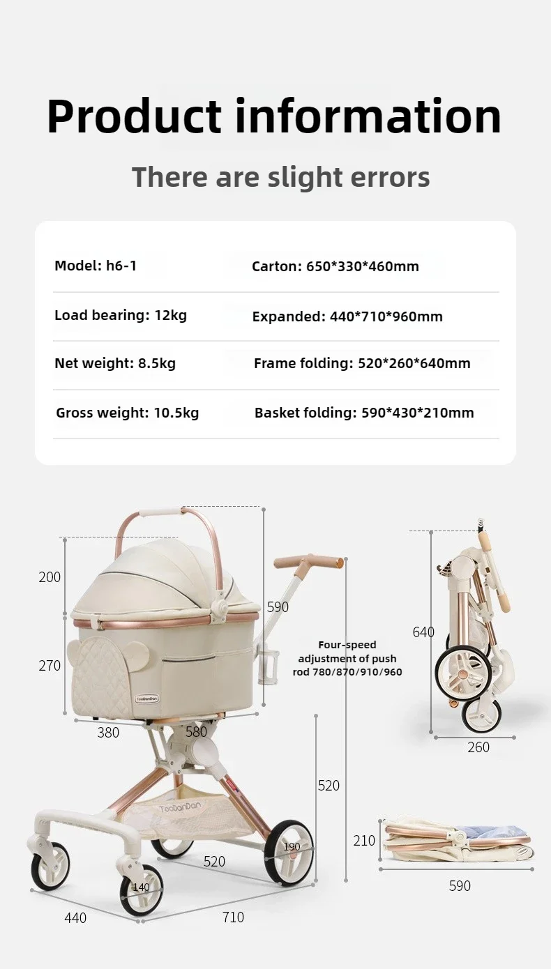 High Landscape Pet Strollers Horizontally and Vertically Reversable Separable Dog Cart Cat Cart Pet Products Dog Supplies