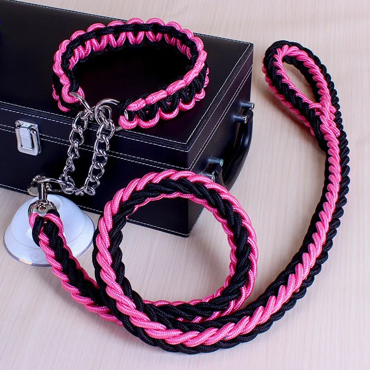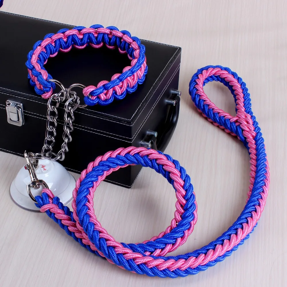 Collar de entrenamiento para perros con cuerda fuerte de alta calidad, correa de cuerda de tracción de punto de nailon y plomo, cadena P para caminar para mascotas, multicolor para perros grandes