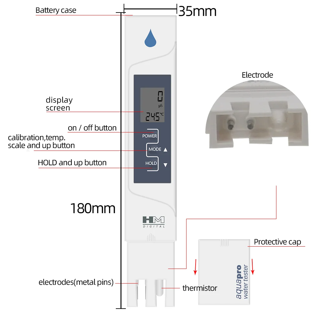Probador de calidad del agua HM Digital 2 en 1 AquaPro, con EC y temperatura, con calibración automática y retención de datos, 40% de descuento