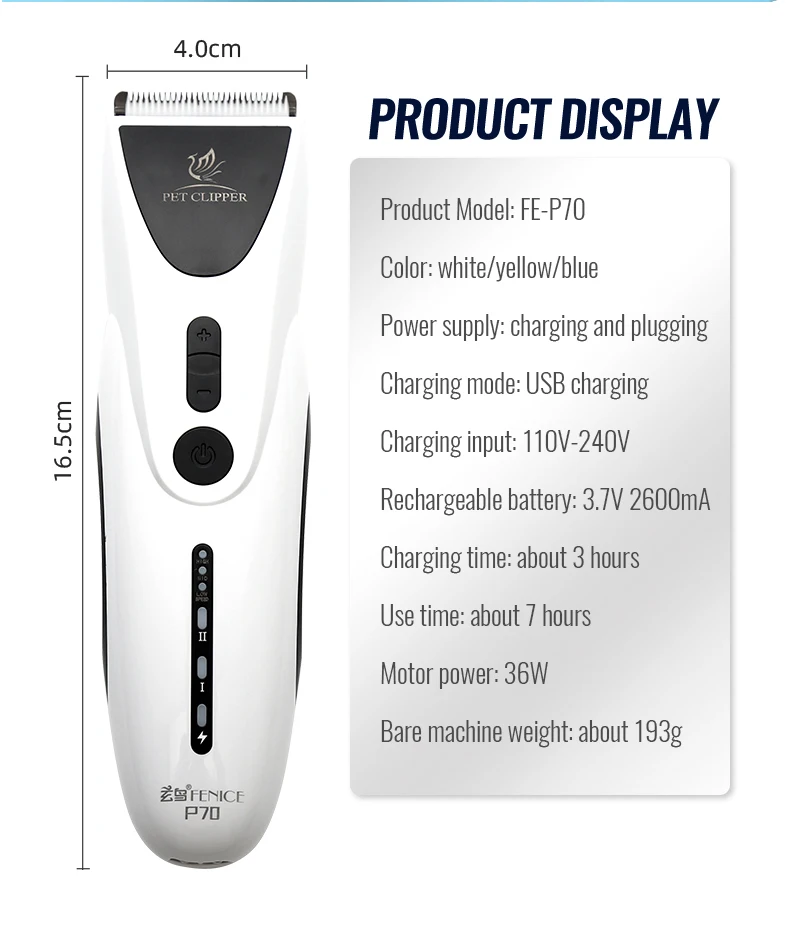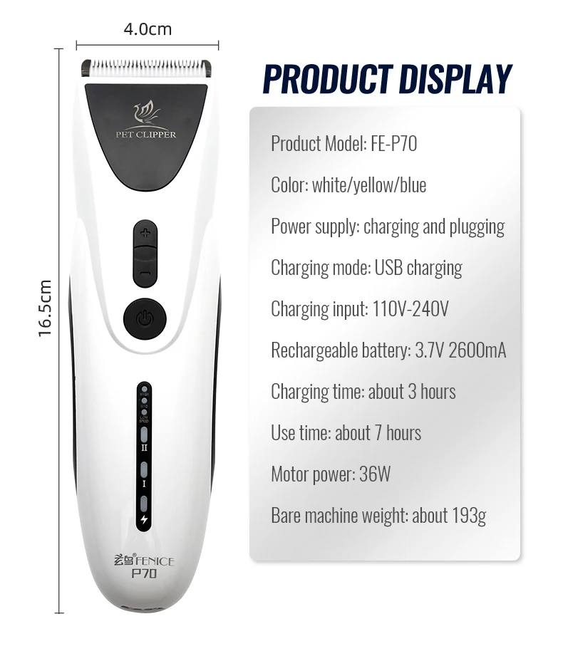Cortadora de pelo de perro Fenice, máquina cortadora de pelo eléctrica, recortadora de pelo para mascotas, conjunto de afeitadora, inalámbrico recargable