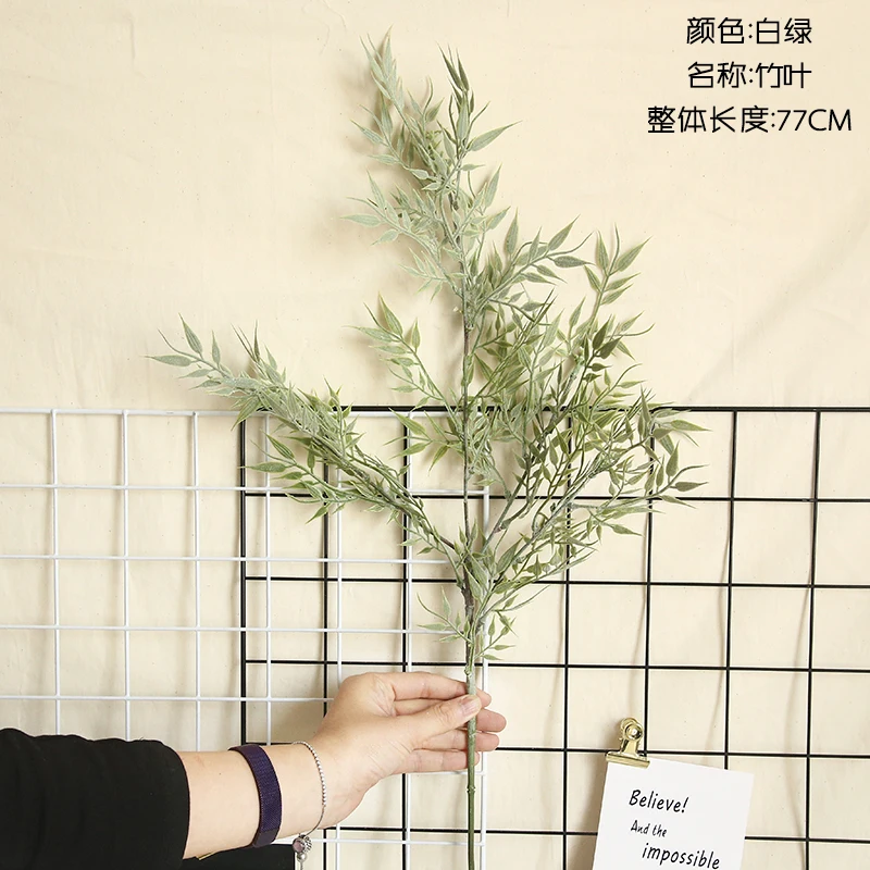 Hojas verdes artificiales de bambú para decoración del hogar y la Oficina, plantas verdes falsas, 1 unidad