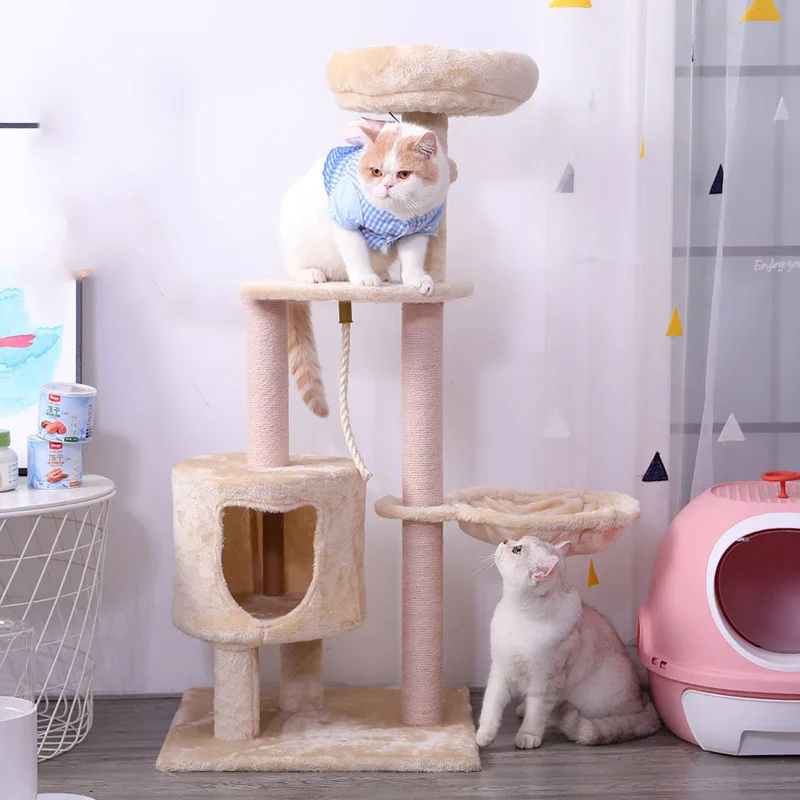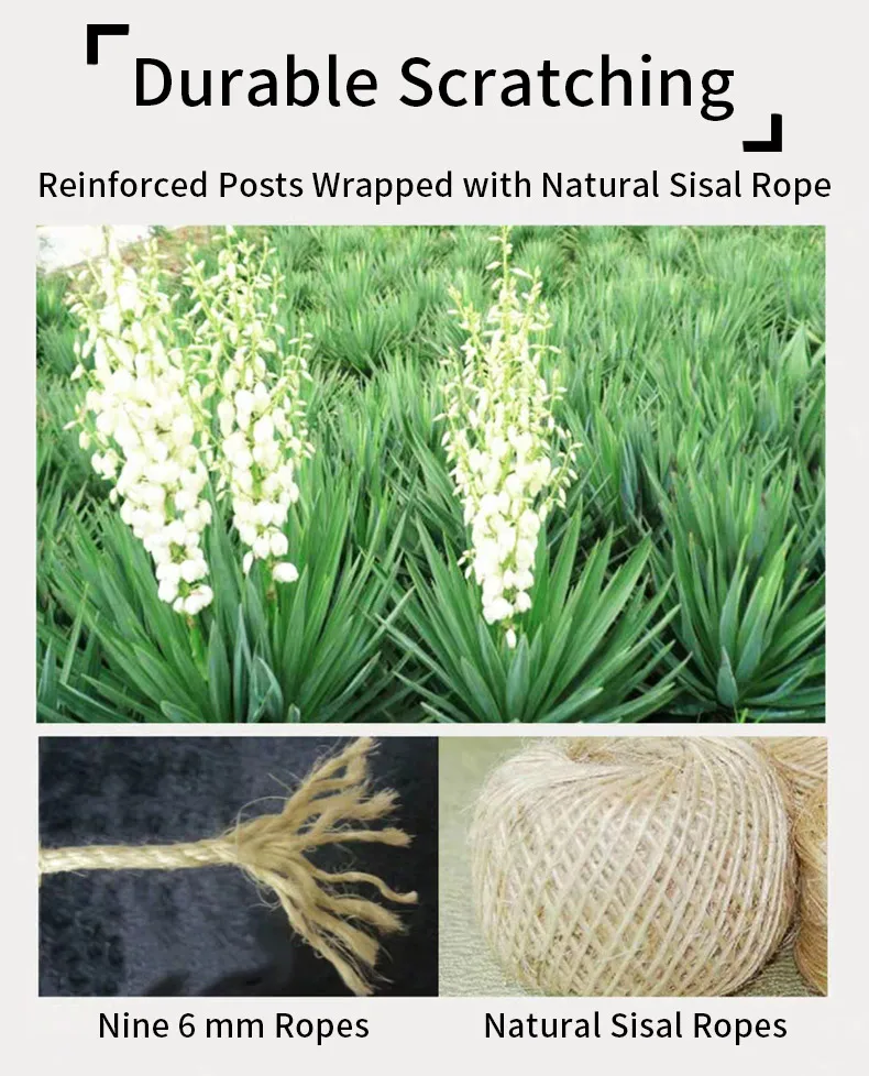 SISAL- POSTVOS:Los postes cubiertos de sisal añaden más diversión al tiempo de juego.Los postes reforzados envueltos con cuerda de sisal natural evitan que su gato raye sus muebles y le permiten tener una forma divertida de hacer ejercicio.