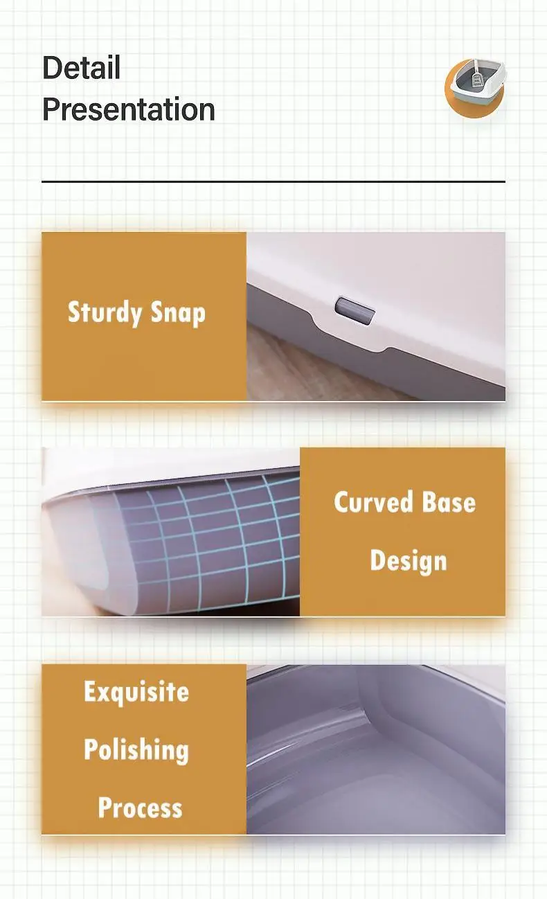 La caja de arena abierta para gatos está diseñada para ofrecer a los gatos mucho espacio y una rápida accesibilidad.
