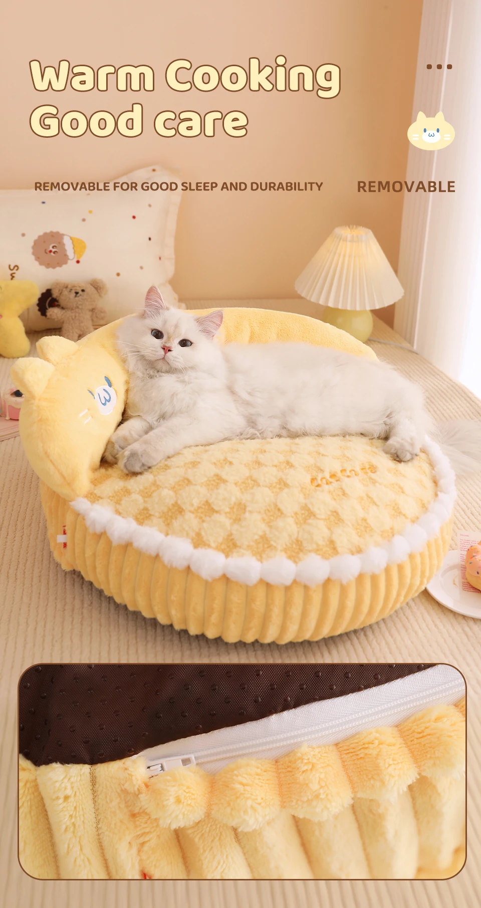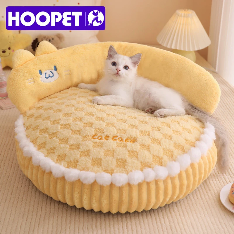 HOOPET-cama para gatos cálida para invierno, almohadilla para dormir de seguridad con forma de Donut, nido para dormir Universal grueso para todas las estaciones, sofá para gatos de invierno