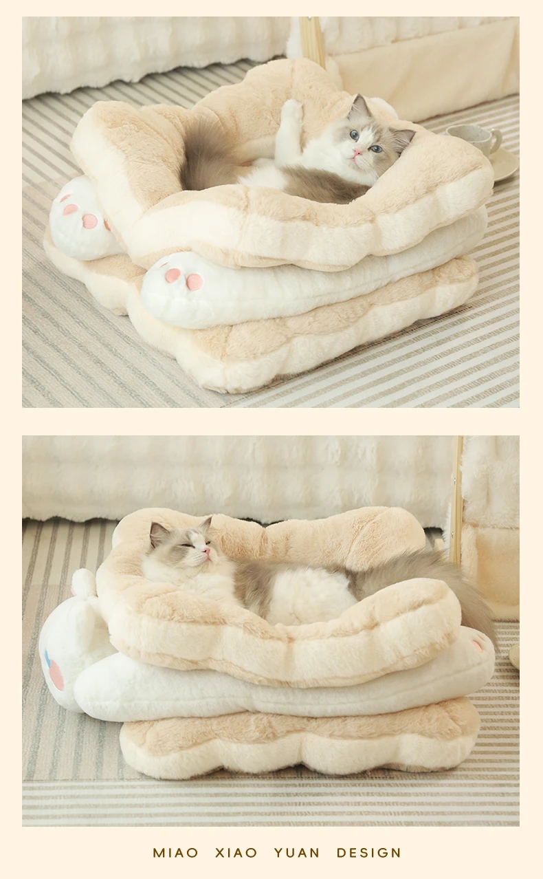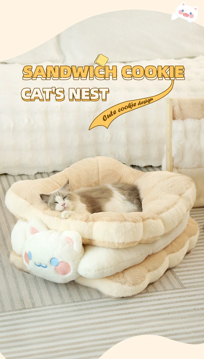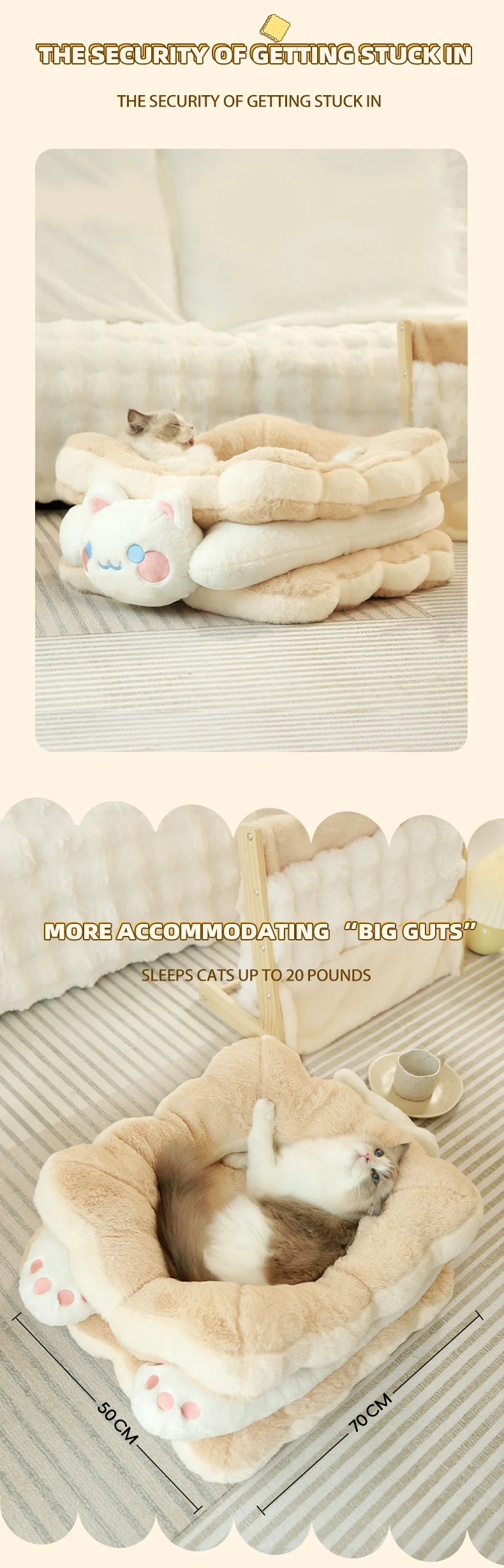 HOOPET Cama para gatos sándwich galleta nido para gatos invierno cálido cama para gatos gruesa gato de invierno gatito durmiendo con perrera para mascotas