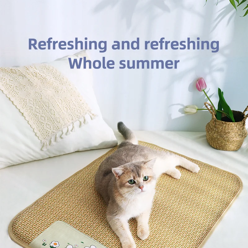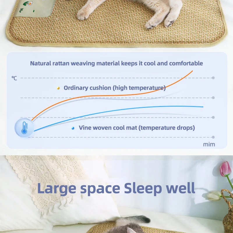 HOOPET-cama tejida de ratán para gatos, sofá cama para mascotas, esterilla de refrigeración para perros pequeños, cojín para gatos, suministros para cachorros