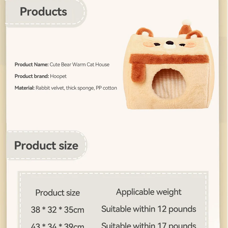 HOOPET-casa de invierno para mascotas, cueva cálida, cesta para perros pequeños, esterilla suave para gatos, perrera para cachorros, suministros para mascotas para dormir profundamente